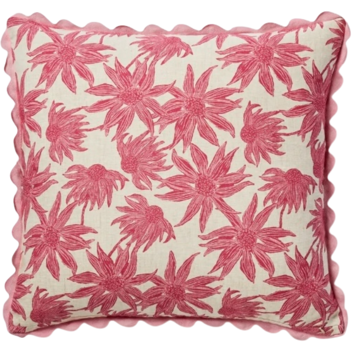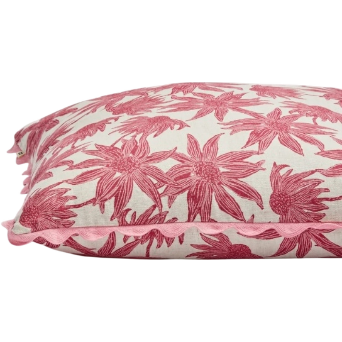 Inspired by the delicate beauty of Australian flannel flowers, Flannel Flower Pink cushion brings a sense of warmth and sophistication to your space. The intricate relief-style detailing, reminiscent of traditional woodcutting techniques, highlights the striking floral design, creating an organic yet structured aesthetic. Perfect for layering on a neutral-toned sofa or pairing with rich hues of cerise, burgundy or hazelnut, this pink floral cushion adds a soft yet confident statement to any interior.